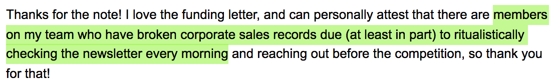 Because as salespeople, we were dissatisfied with the status quo. We have experienced the tremendous value of structuring and personalizing outreach around prospect growth and funding. Companies are more likely to invest in new products when they:
